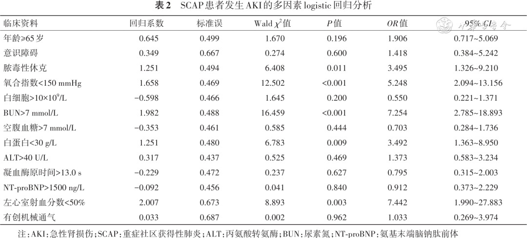 注:AKI:急性肾损伤;SCAP:重症社区获得性肺炎;BUN:尿素氮;LVEF:左心室射血分数