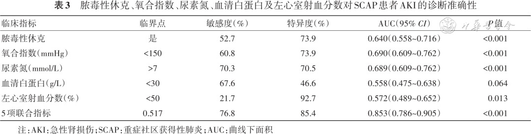 注:AKI:急性肾损伤;SCAP:重症社区获得性肺炎;ROC:受试者工作特征
